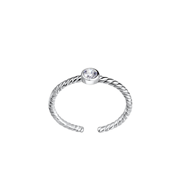 2.5mm Round Cubic Zirconia Silver Twisted Toe Ring