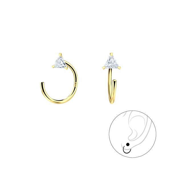 3mm Triangle Cubic Zirconia Silver Ear Huggers