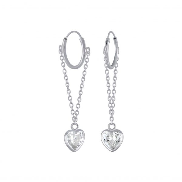 Silver Heart Cubic Zirconia Charm Hoop Earrings