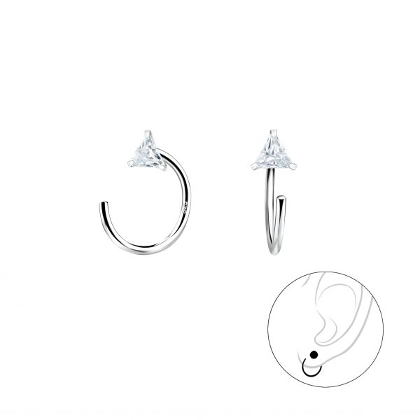 3mm Triangle Cubic Zirconia Silver Ear Huggers