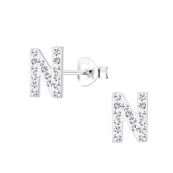 Silver Letter N Stud Earrings