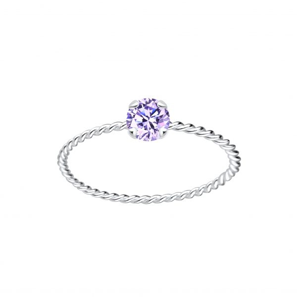 4mm Round Cubic Zirconia Silver Twisted Band Solitaire Ring