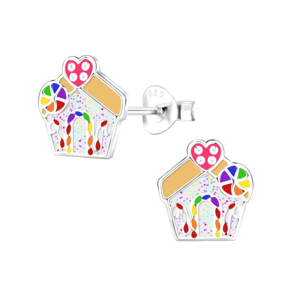 Silver Gingerbread House Stud Earrings