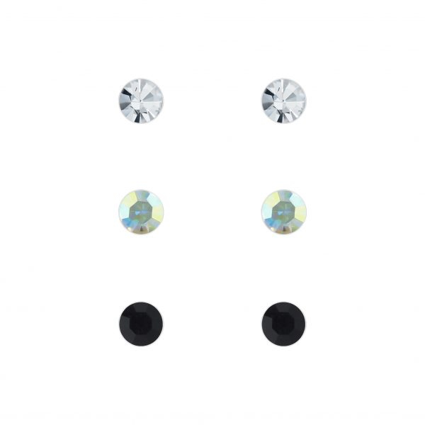 4mm Crystal Silver Stud Earrings Set