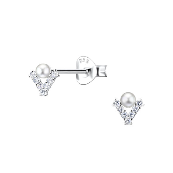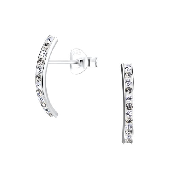 Silver Curved Crystal Stud Earrings