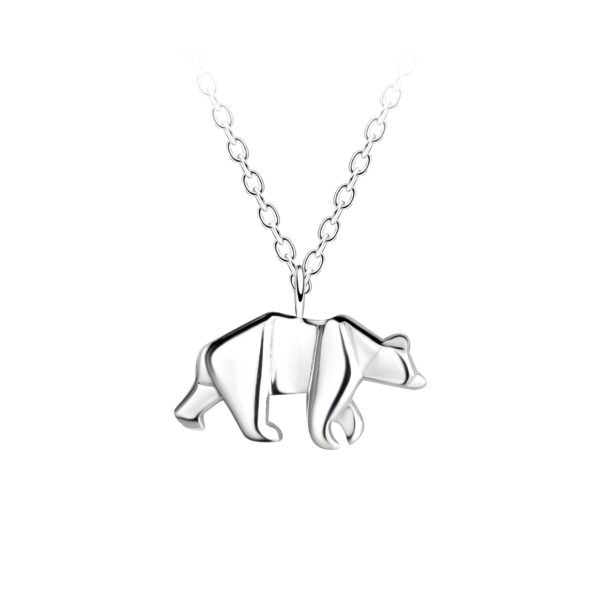 Silver Origami Bear Necklace