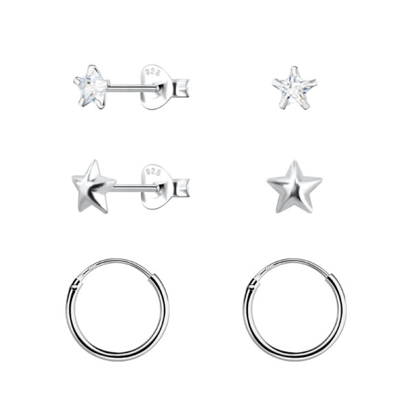 Silver Star Stud and Hoop Earrings Set