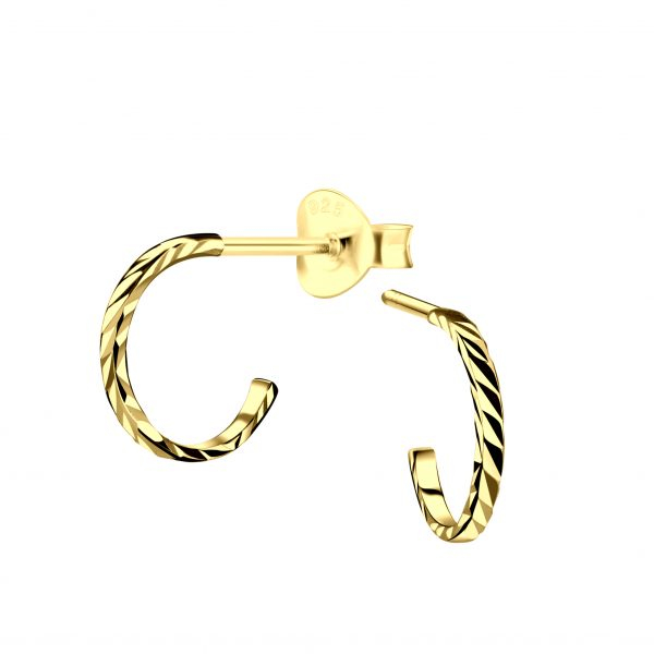 Silver Half Hoop Stud Earrings with Diamond Cut