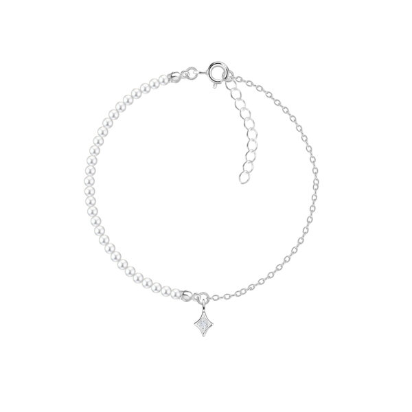 Silver Diamond Shaped Imitation Pearl Bracelet